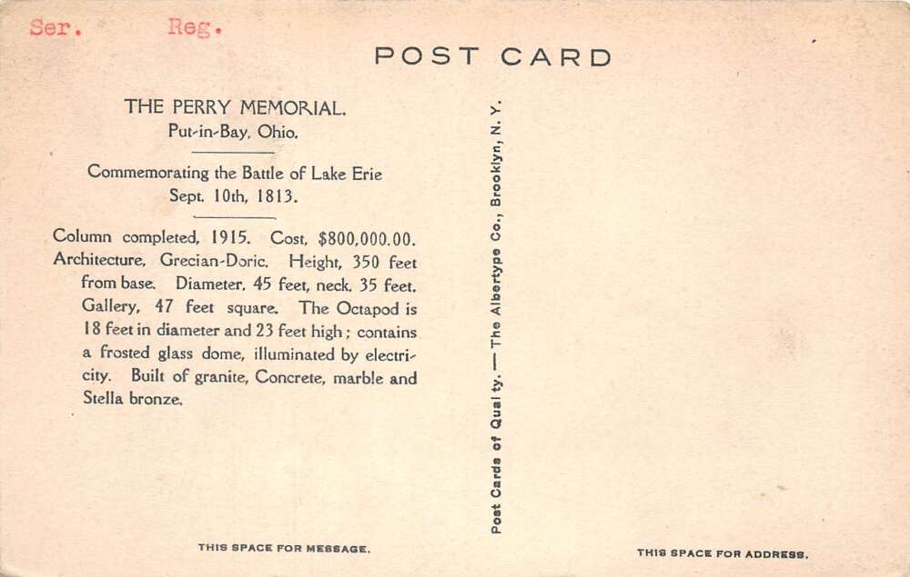 Put in Bay Ohio The Perry Memorial Vintage Postcard AA108990