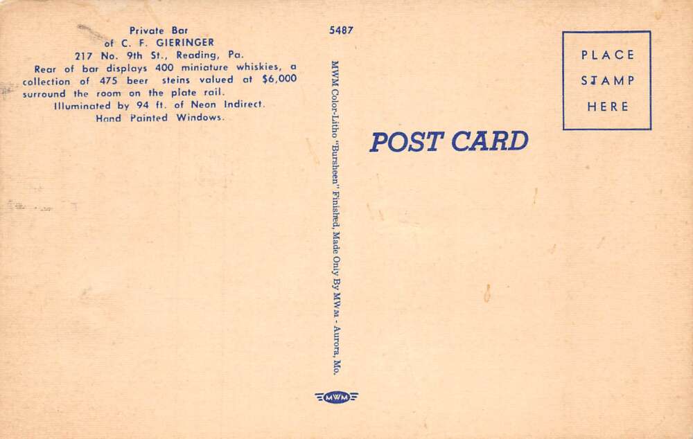 Reading Pennsylvania Geiringer Bar Interior Vintage Postcard AA63483