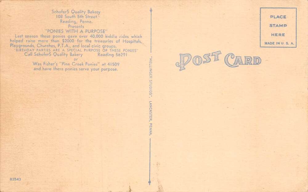 Reading Pennsylvania Schofer’s Bakery, Showing The Cisco Kid Ponies, PC U11676