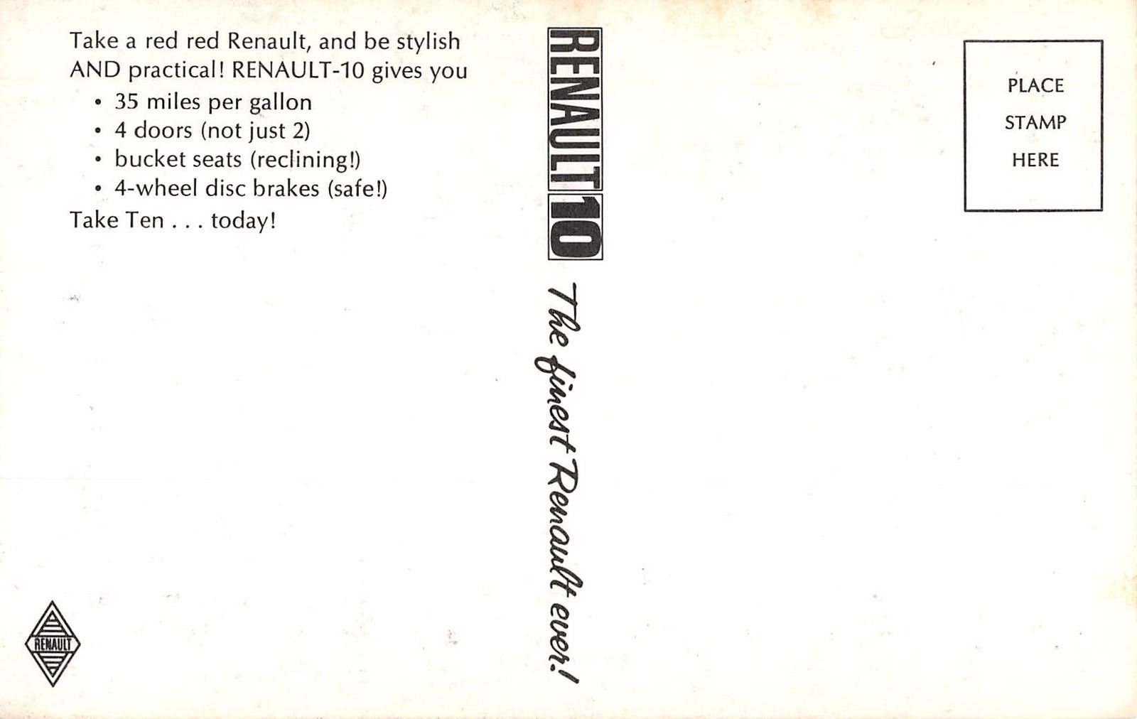 Renault-10 Automobile Advertising Vintage Postcard (J21445) Good Condition.
