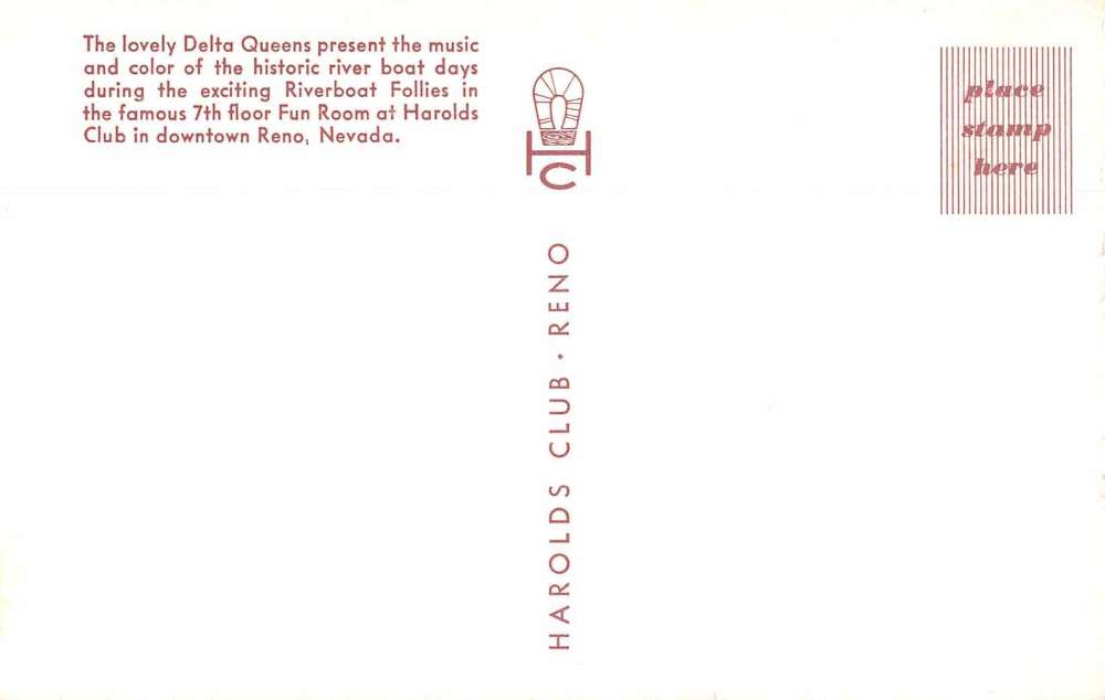 Reno Nevada Harolds Club Delta Queens Riverboat Follies Postcard JF360389