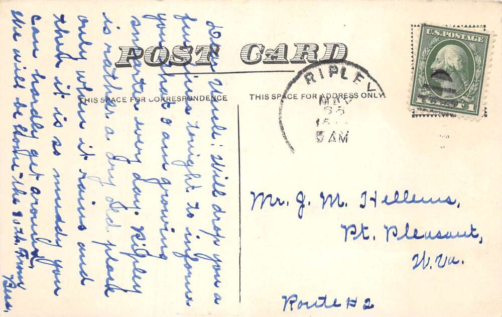 Ripley West Virginia School Building, Sky Tinted Lithograph, Vintage PC U26749