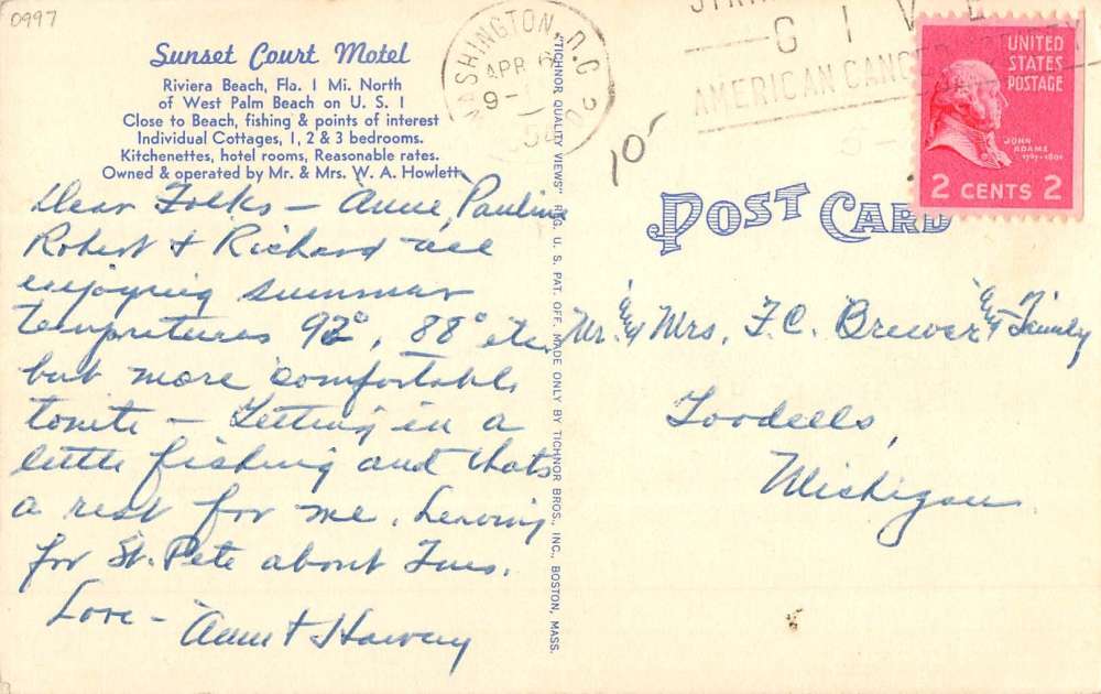 Riviera Beach Florida Sunset Court Motel Street View Antique Postcard K71243