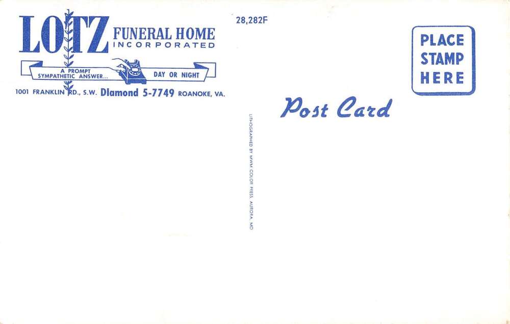 Roanoke Virginia Lotz Funeral Home Chapel Interior Vintage Postcard AA50987