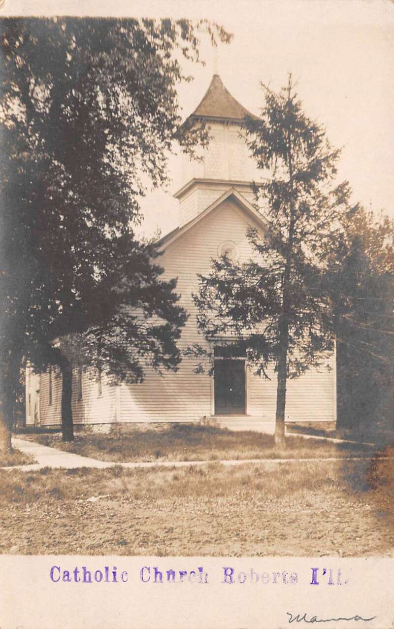 Roberts Illinois Catholic Church Real Photo Vintage Postcard AA71457