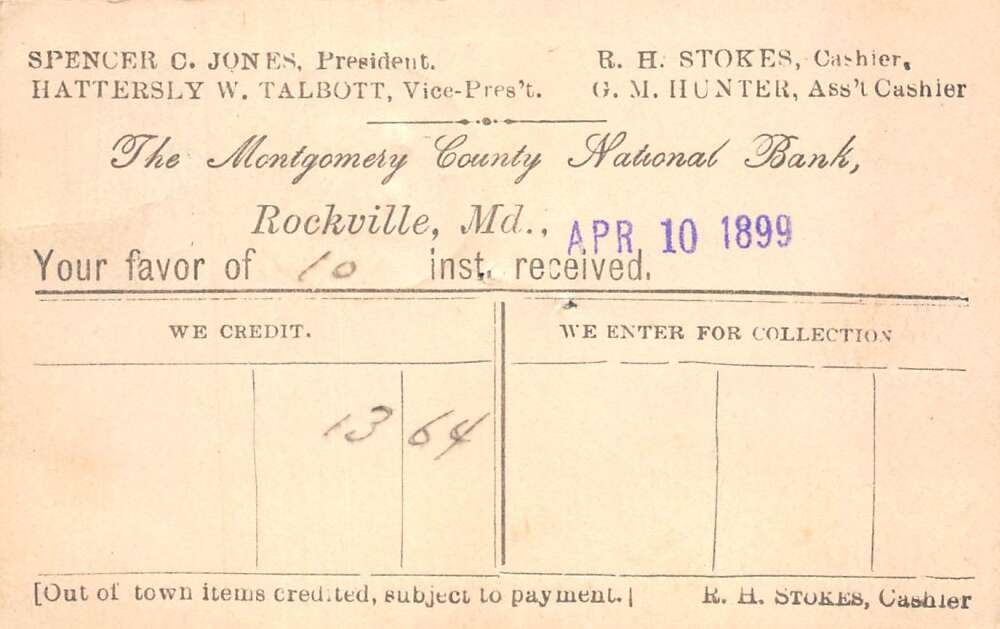 Rockville Maryland Montogmery Co National Bank Postal Receipt Postcard AA109890