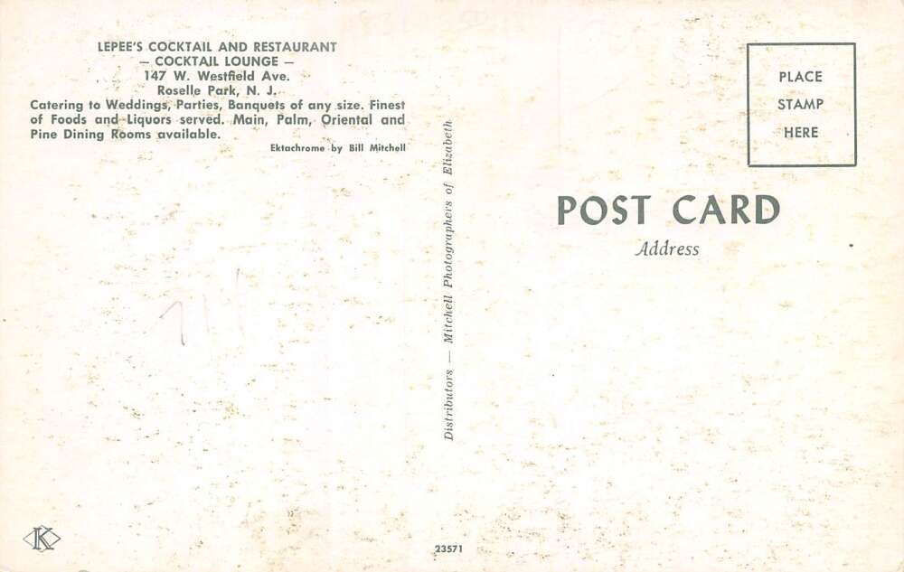 Roselle Park New Jersey Lepee’s Cocktail Lounge & Restaurant, Chrome, PC U12548