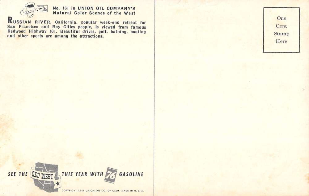 Russian River California scenic view Union Oil Co 76 Gasoline antique pc Y11308