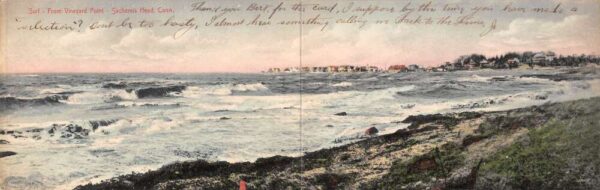 Sachemis Head Connecticut Surf from Vineyard Point Bi-Fold Postcard AA92396