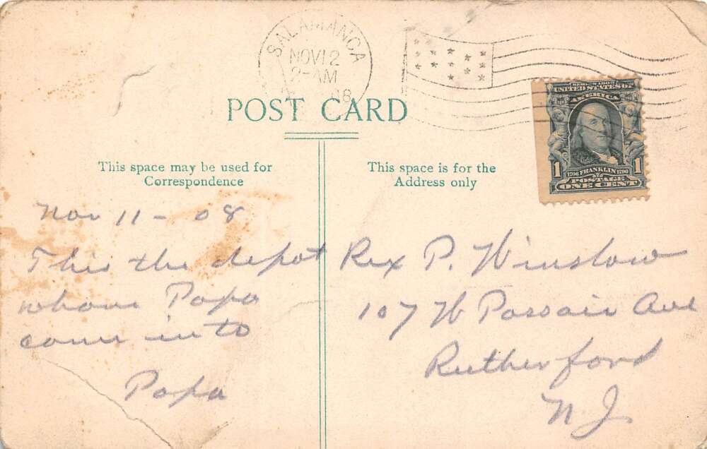 Salamanca New York Erie Station, Sepia Tone Lithograph Vintage Postcard U8792