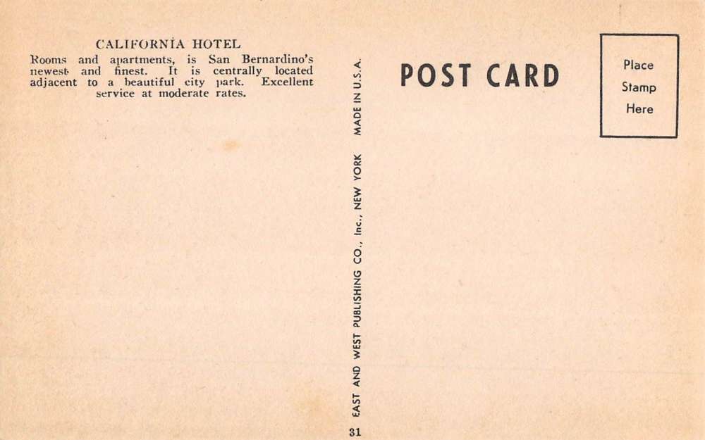 San Bernardino California Hotel Birdseye View Antique Postcard K54365