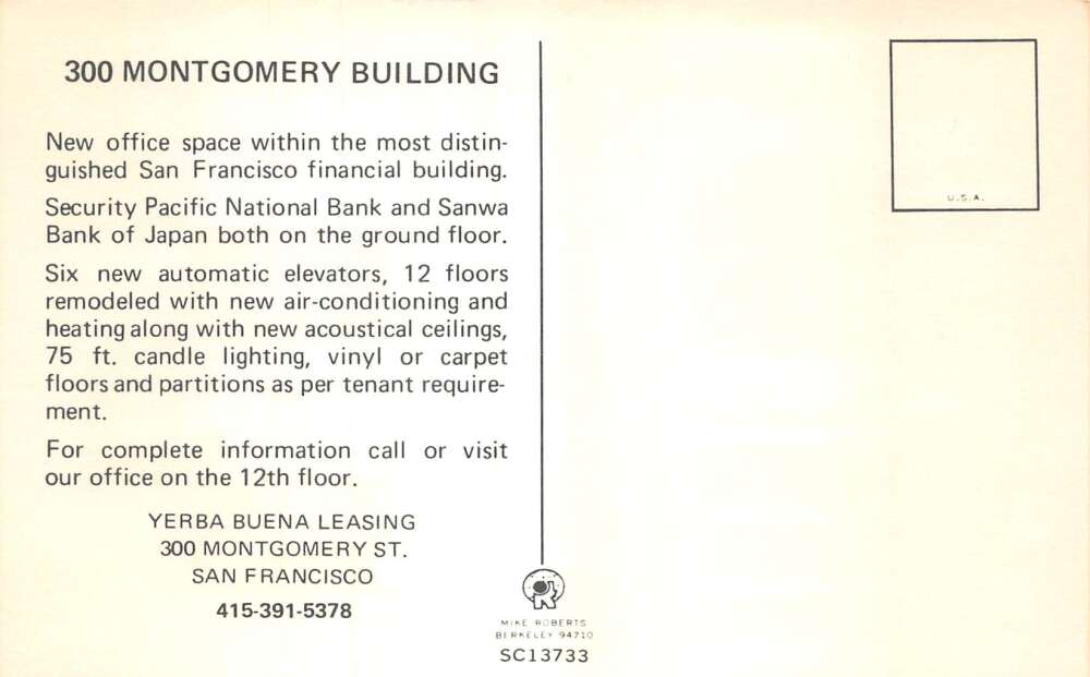San Francisco California 300 Montgomery Building Vintage Postcard AA79250