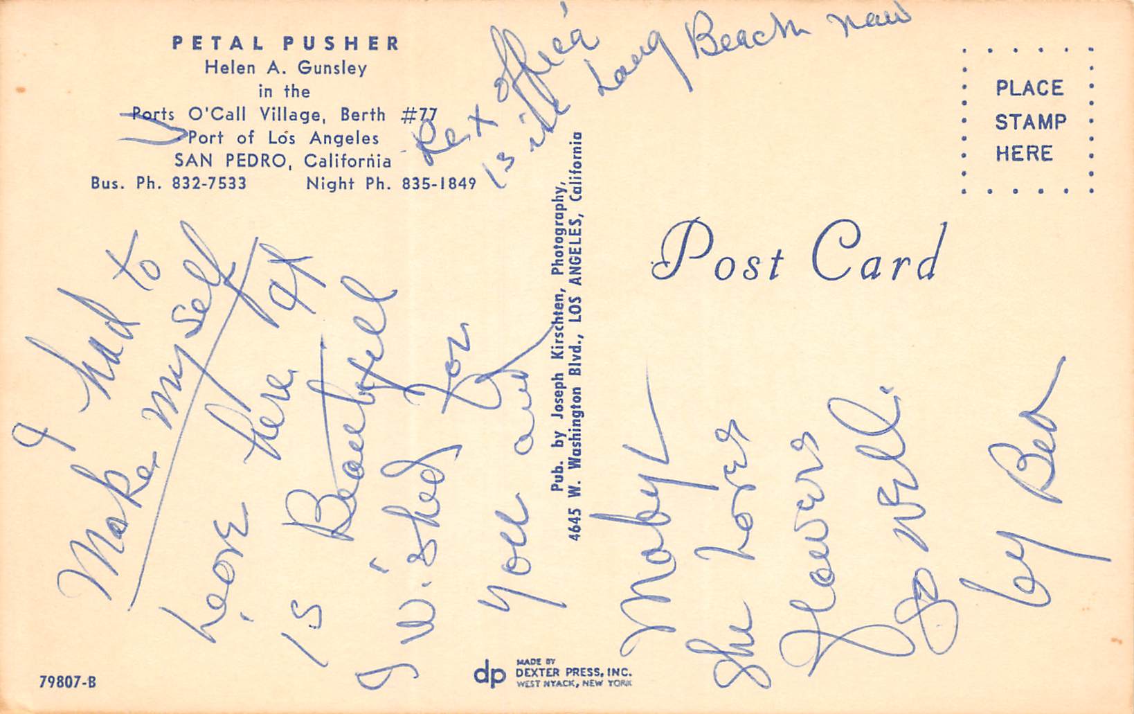 San Pedro California Petal Pusher Flower Shop, Photochrome Vintage PC U12615