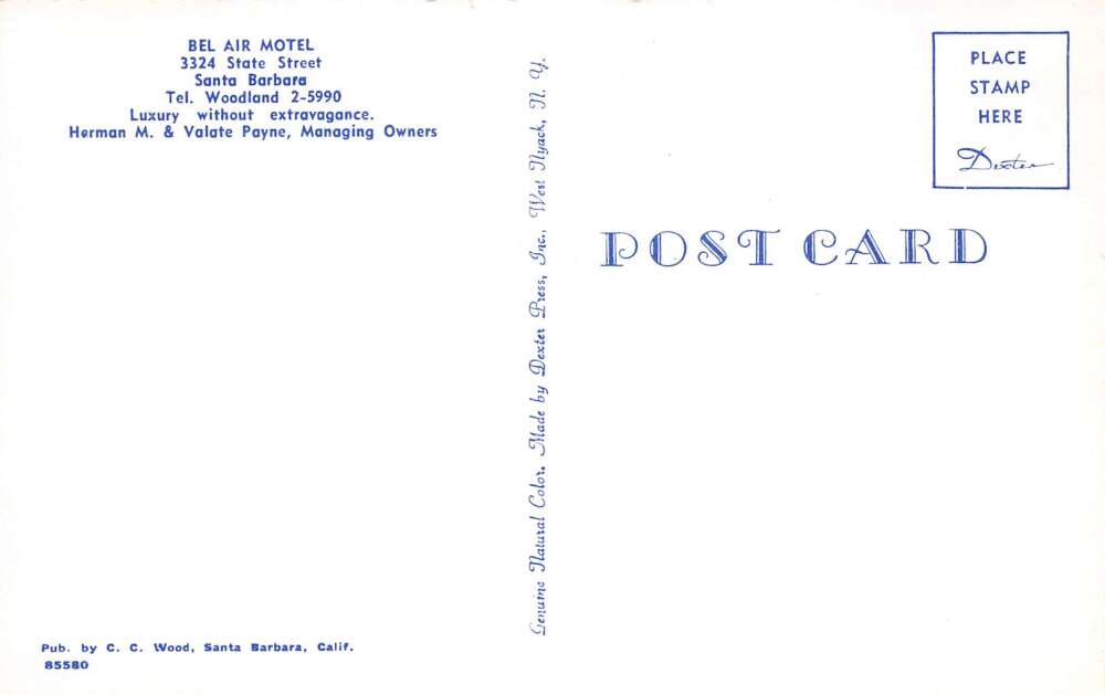 Santa Barbara California Bel Air Motel Vintage Postcard AA79080