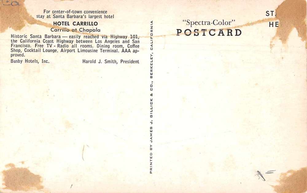 Santa Barbara California boats pier beach Hotel Carrillo vintage pc Z45621