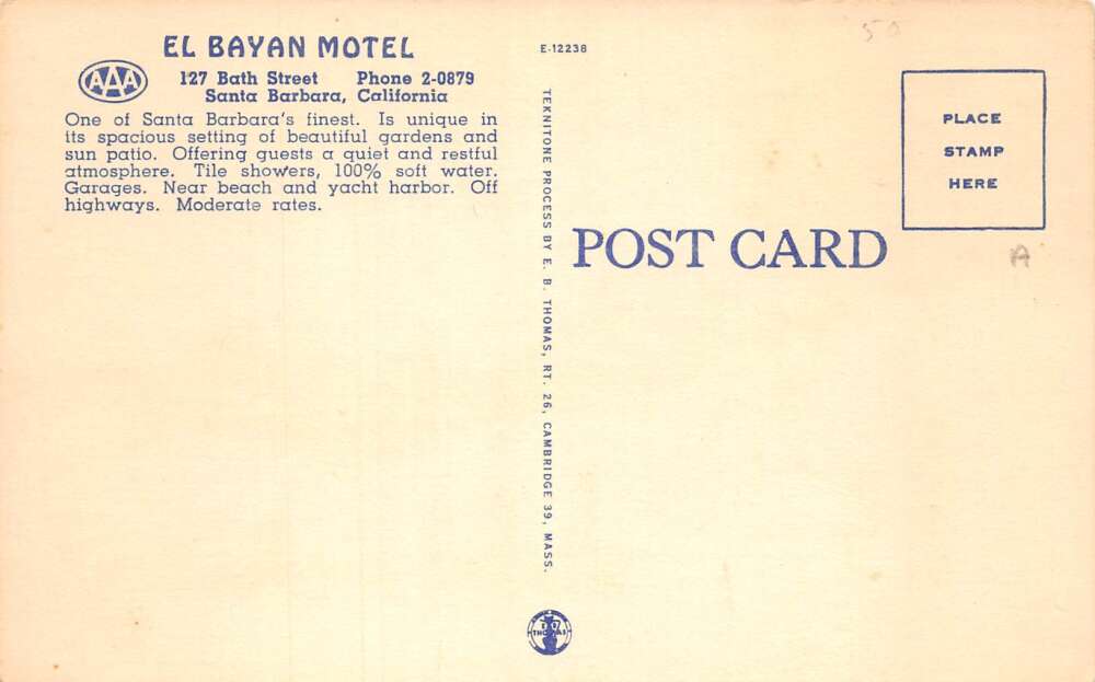 Santa Barbara California El Bayan Motel Vintage Postcard AA79077