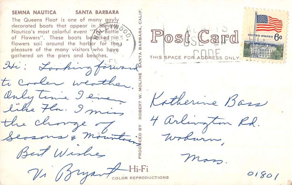 Santa Barbara Florida Semna Nautica Pageant Girl Vintage Postcard K80379