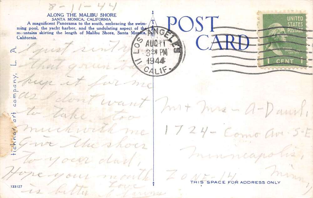 Santa Monica California Along the Malibu Shore Linen Vintage Postcard AA108477