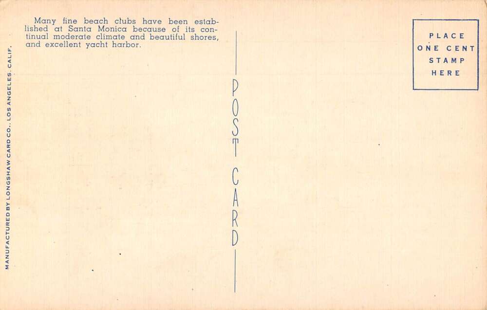 Santa Monica California Beach Club and Movie Star Homes Vintage Postcard AA20272