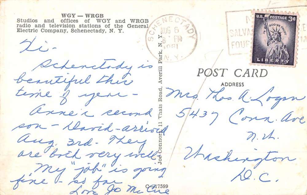 Schenectady New York WGY WRGB Radio TV Studio Vintage Postcard K63920