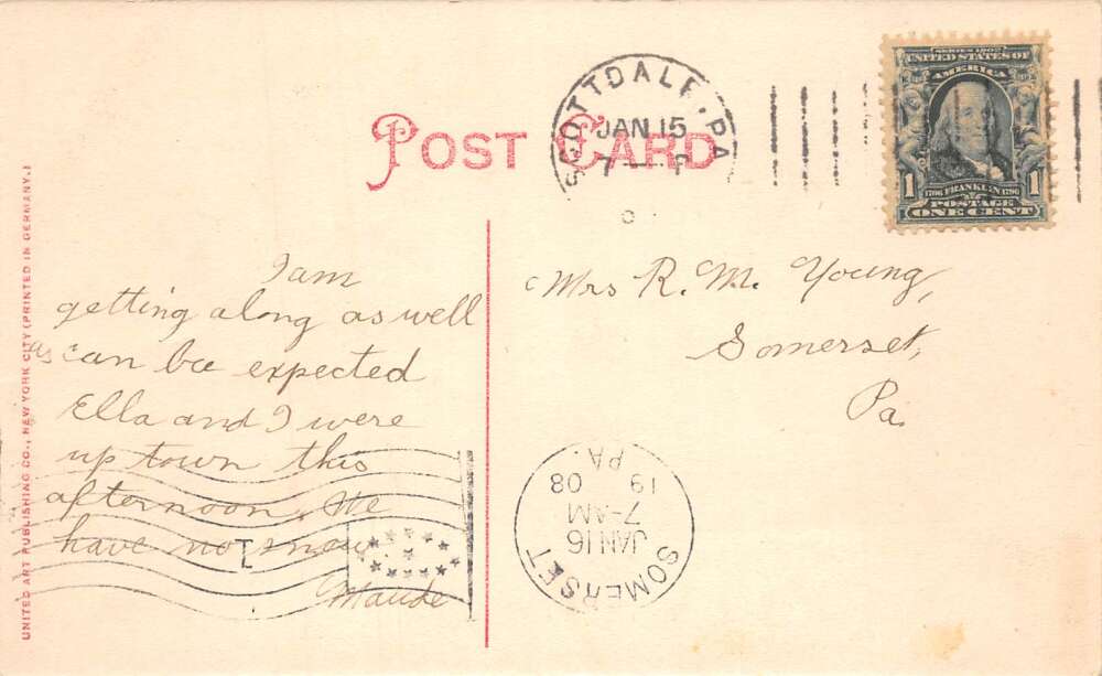 Scottdale Pennsylvania Broadway Trolley Vintage Postcard AA100124