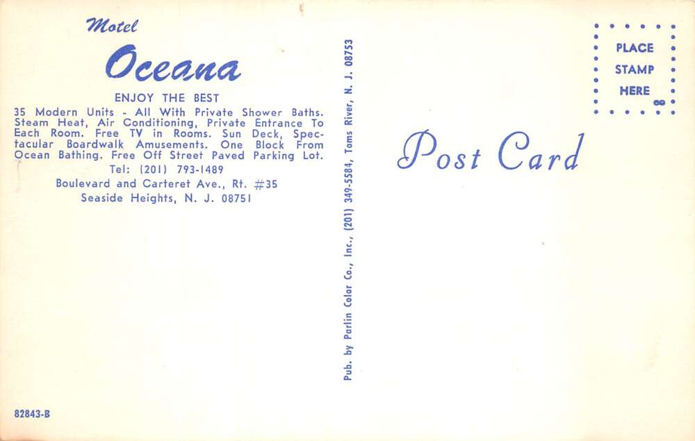 Seaside Heights New Jersey New Oceana Motel Vintage Postcard AA73950