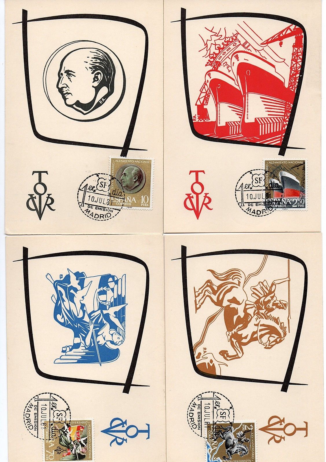 Set of 12 Spain XXV National Uprising Anniversary Postal Used Vintage PCs (J24979) Good Condition.