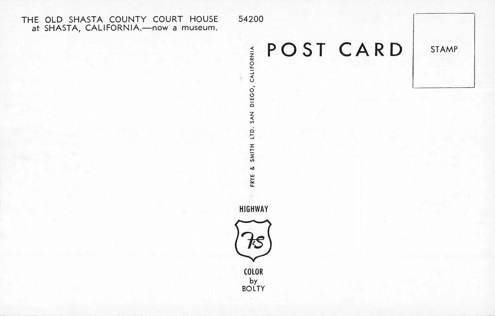 Shasta California bird’s eye view Shasta Co Court House vintage pc (Z9414). Good condition – has not been used.