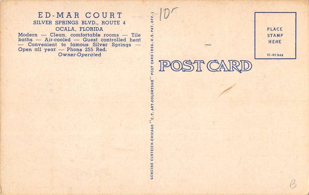 Silver Springs Florida Ed Mar Court Street View Antique Postcard K70547