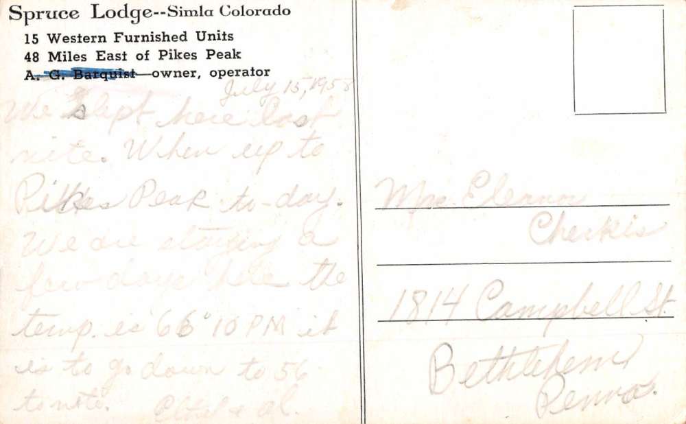 Simla Colorado Spruce Lodge Street View Antique Postcard K83637