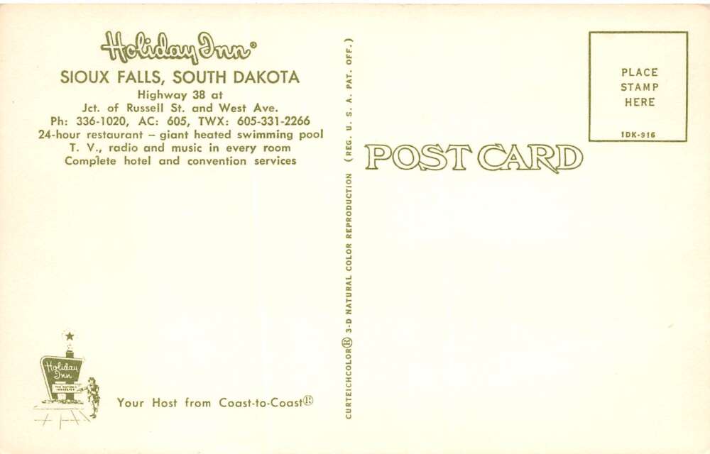 Sioux Falls South Dakota Holiday Inn, Chrome, Vintage Postcard U17480