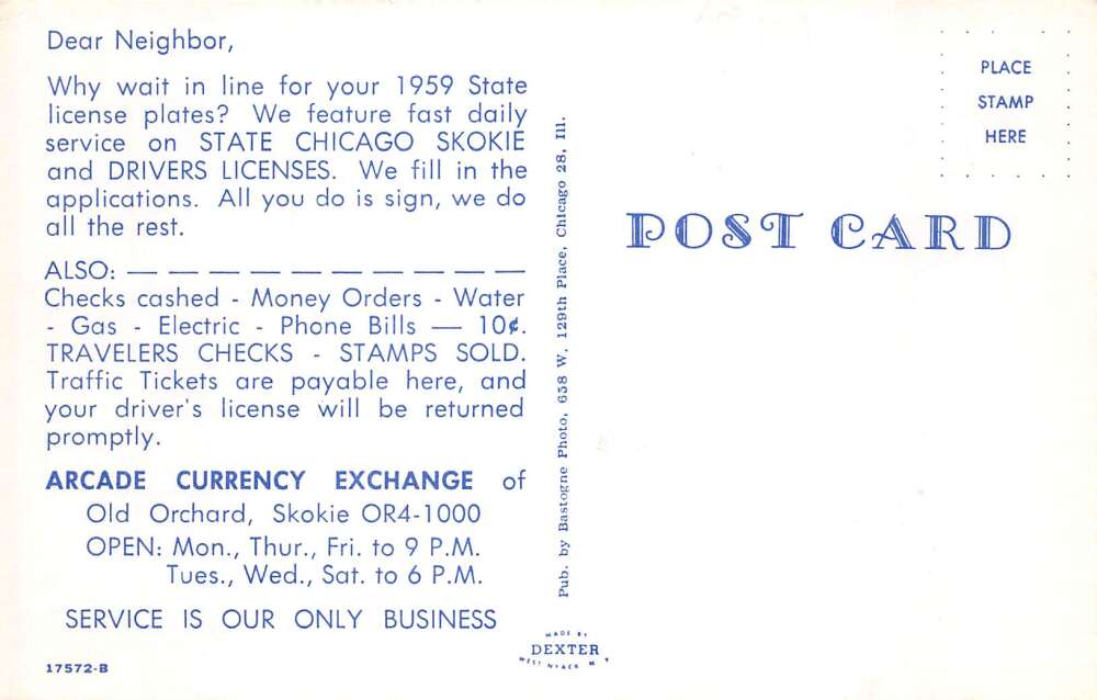 Skokie Illinois Arcade Currency Exchange Vintage Postcard AA79957