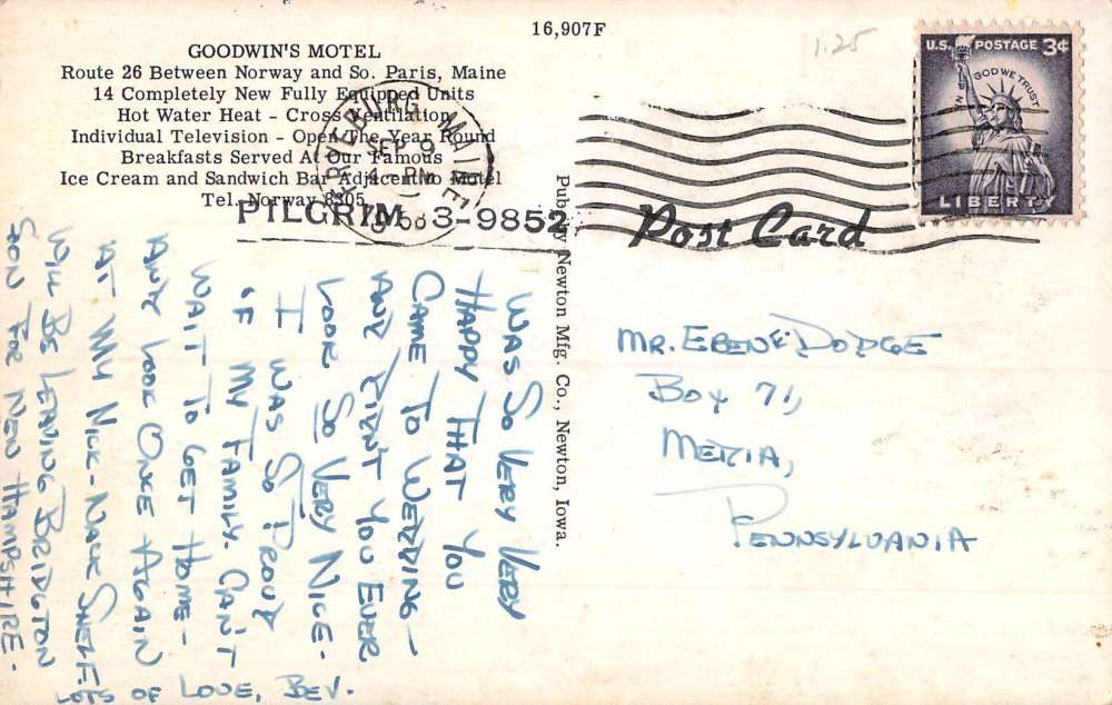 South Paris Maine Goodwins Motel Street View Vintage Postcard K85139