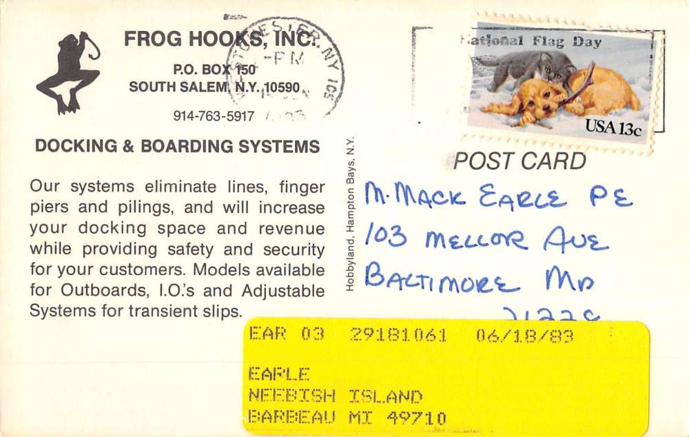 South Salem New York Frog Hooks Inc Motor Boats Vintage Postcard K64045