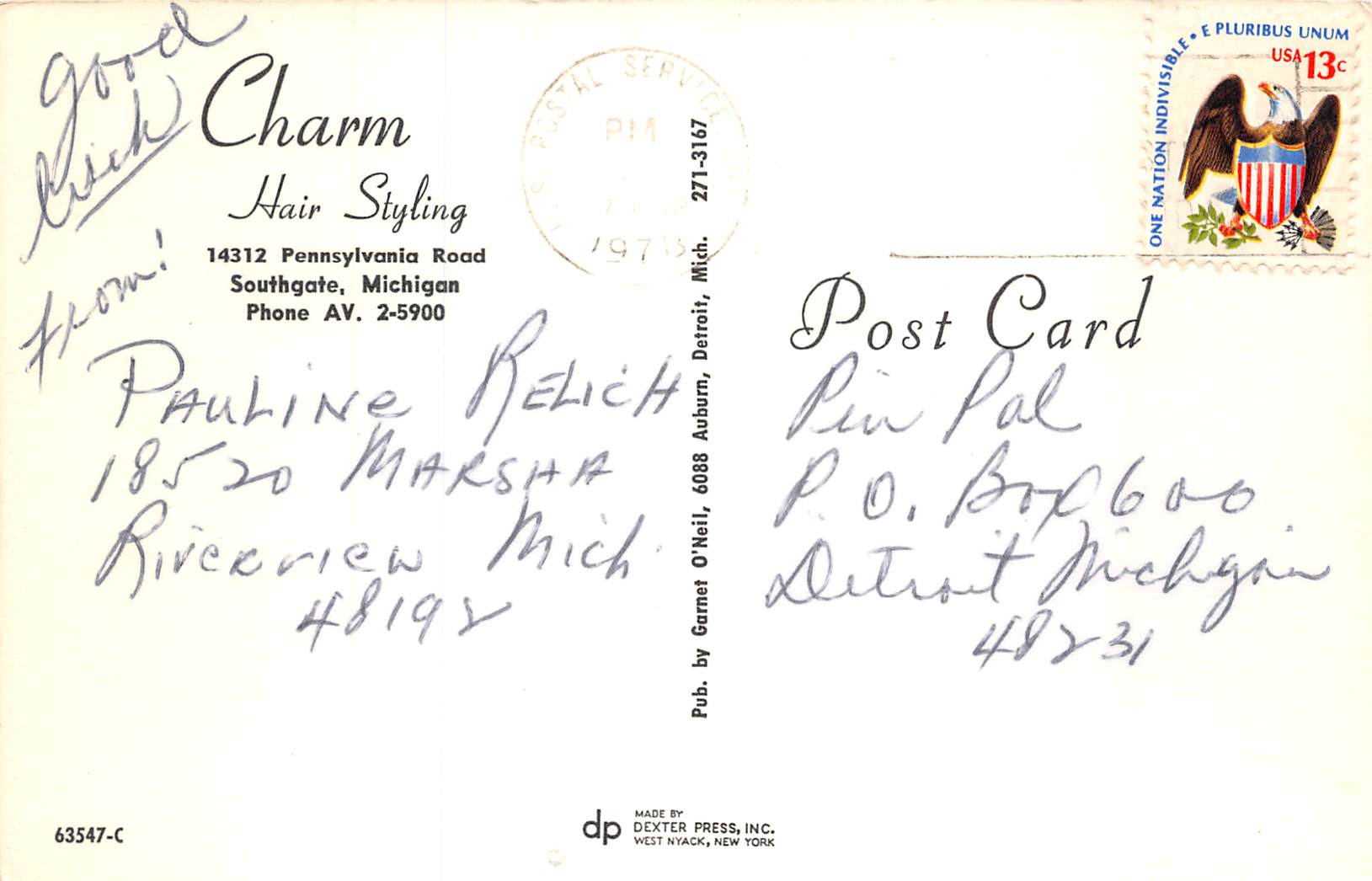 Southgate Michigan Charm hair Styling, Photochrome, Vintage Postcard U11477
