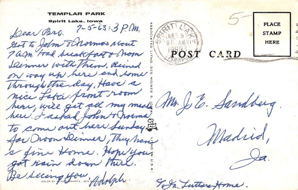 Spirit Lake Iowa Templar Park Birdseye View Vintage Postcard K57500