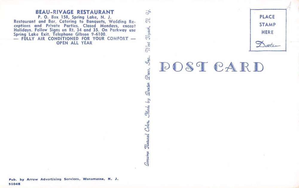 Spring Lake New Jersey Beau-Rivage Restaurant Interior View Postcard J76125