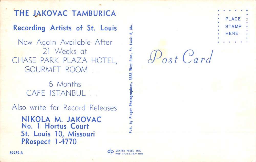 St Louis Missouri Jakovac Tamburica Band Vintage Postcard K54395