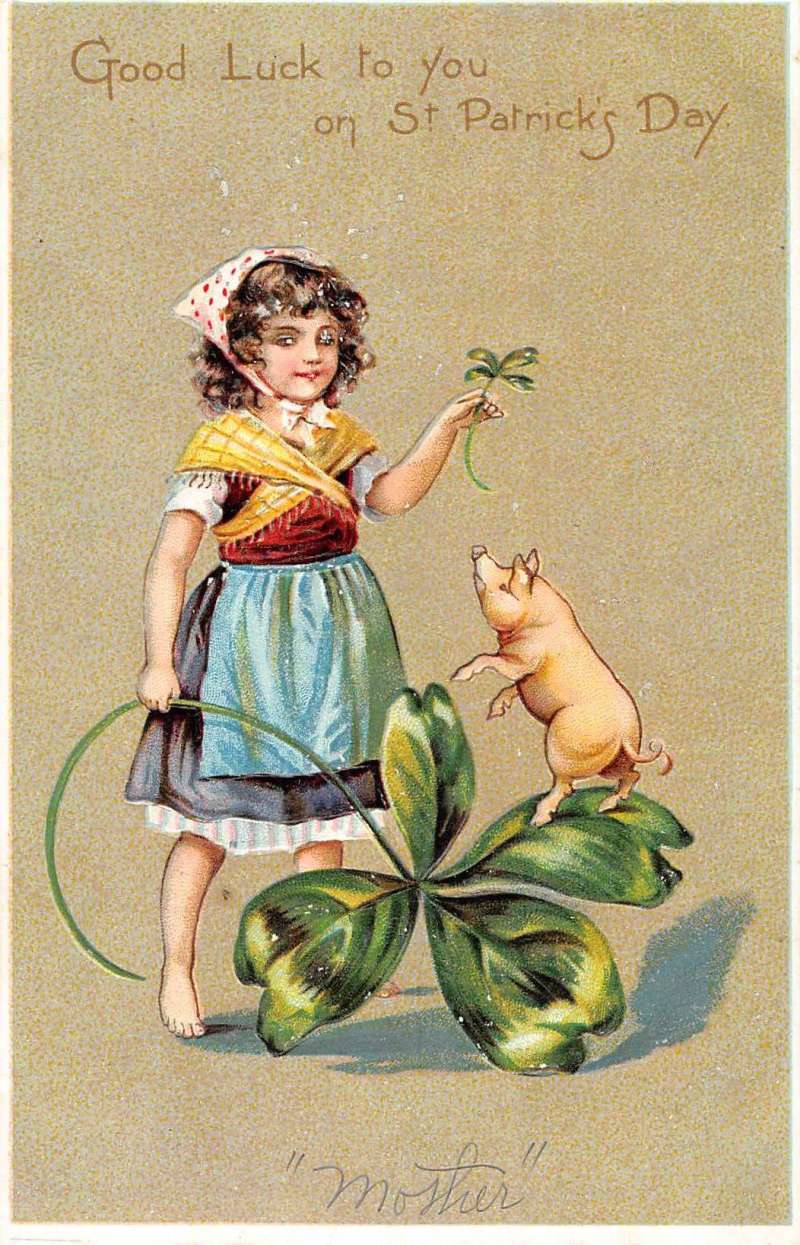 St Patricks Fay Girl With Pick Four Leaf Clover Tuck Antique Postcard K88327