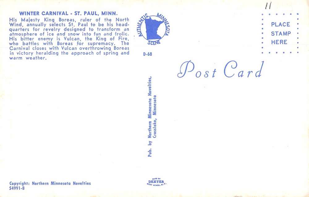 St Paul Minnesota “King Boreas” in the Winter Carnival vintage pc Z43064