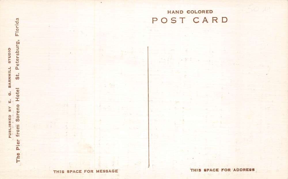St Petersburg Florida Pier from Soreno Hotel Barnhill Hand Colored PC AA73173