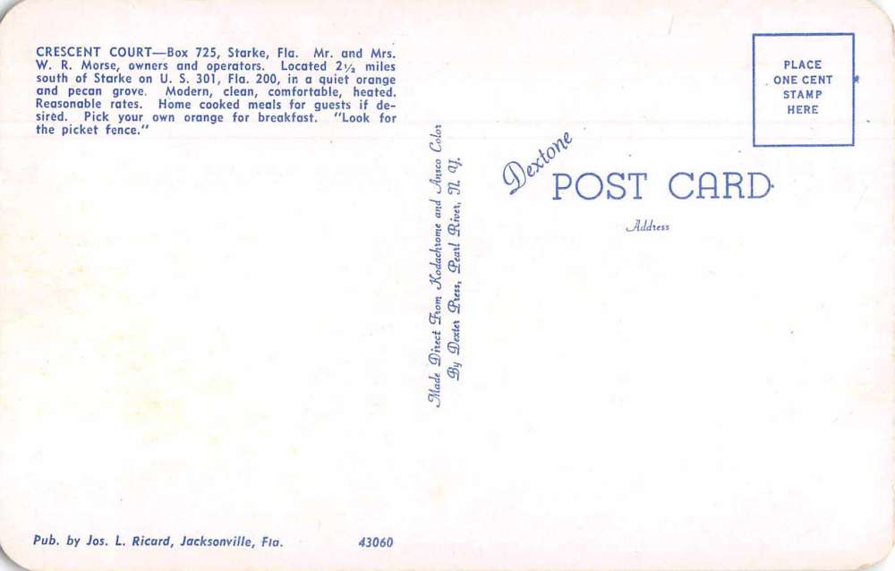 Starke Florida Crescent Court Scenic View Vintage Postcard J73908