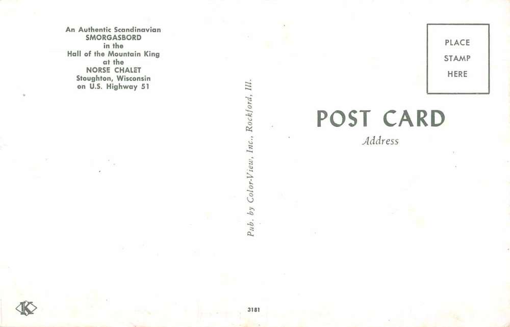 Stoughton Wisconsin Hall of the Mountain King at Norse Chalet vintage pc Z47190