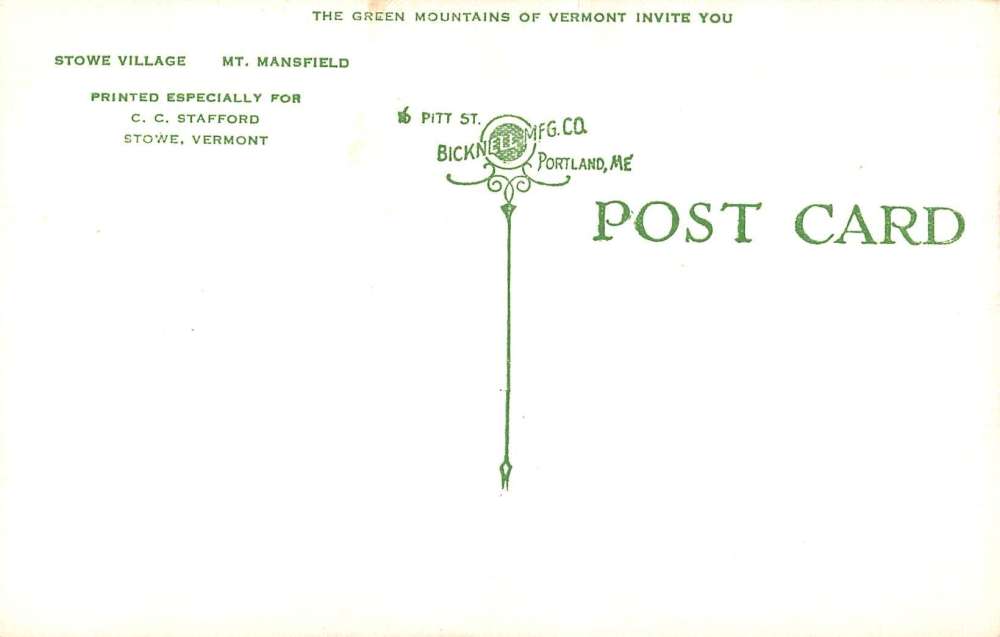 Stowe Village Vermont birds eye view Mt Mansfield antique pc Y12136