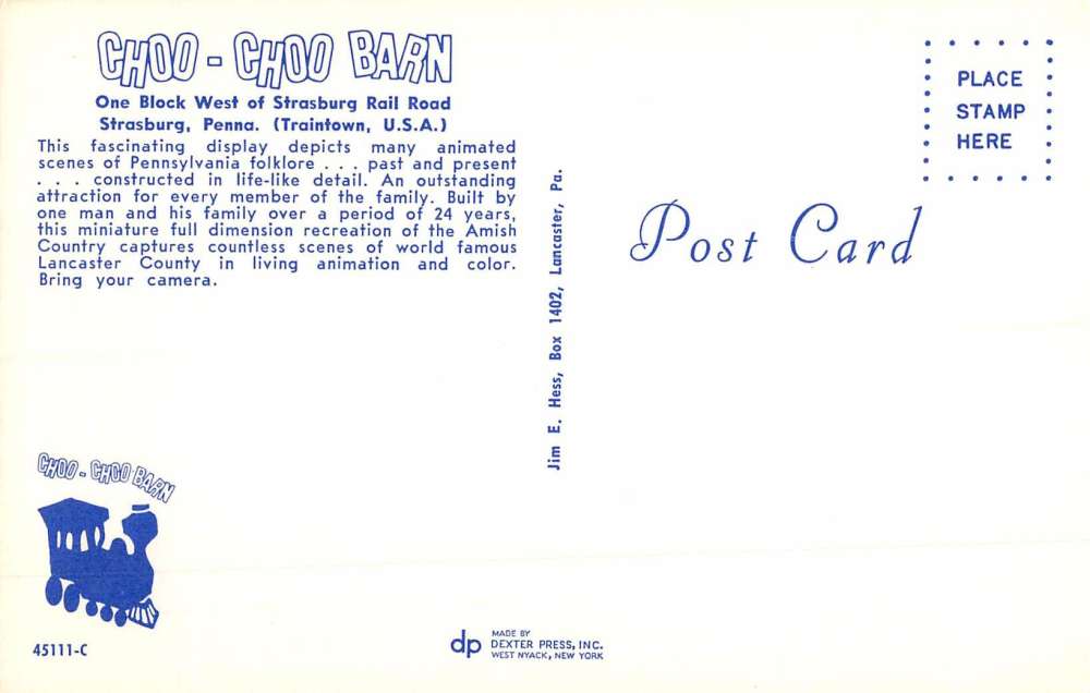 Strasburg Pennsylvania Choo Choo Barn Street View Vintage Postcard K82791