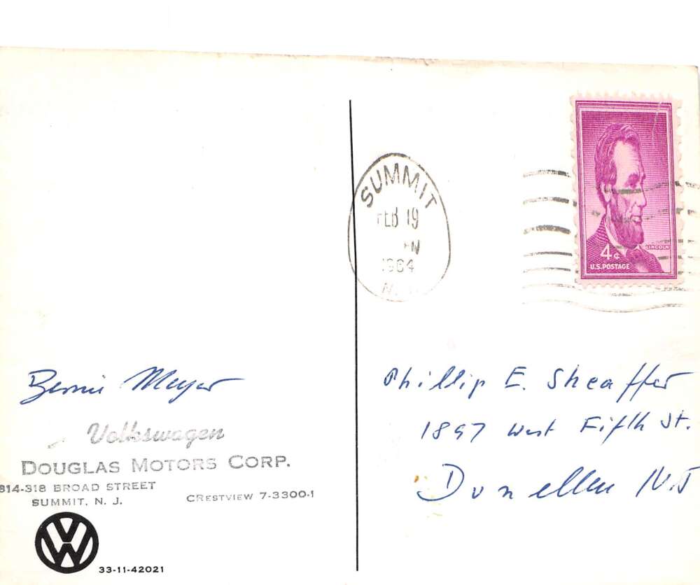 Summit New Jersey VW Bug, Douglas Motors Corp., Vintage Postcard U26691