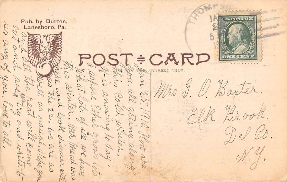 Susquehanna Pennsylvania Canavans Glen in Winter Antique Postcard K85716