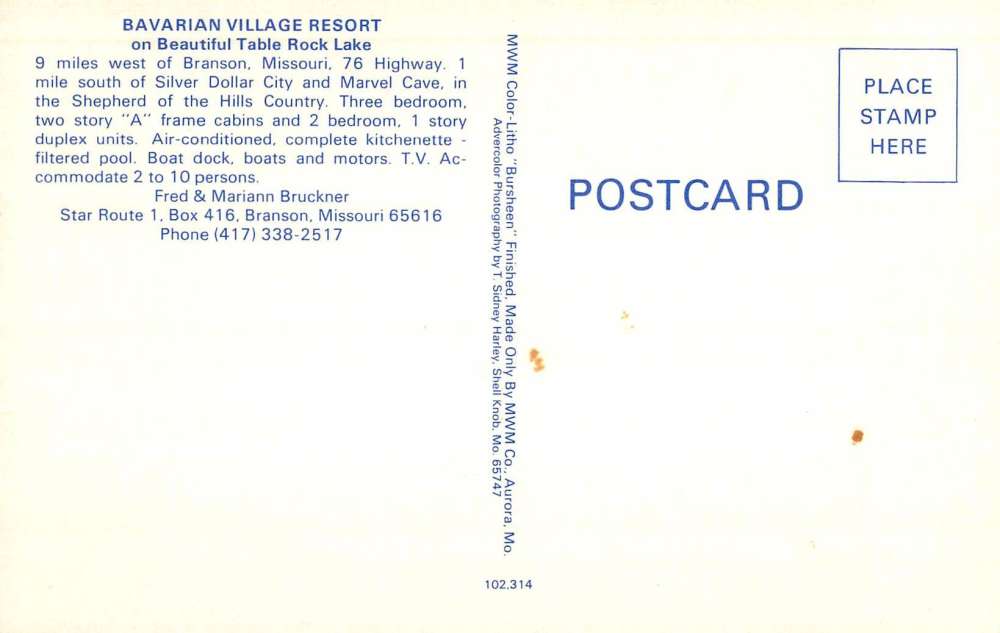Table Rock Lake Missouri Bavarian Village Resort Vintage Postcard K102773