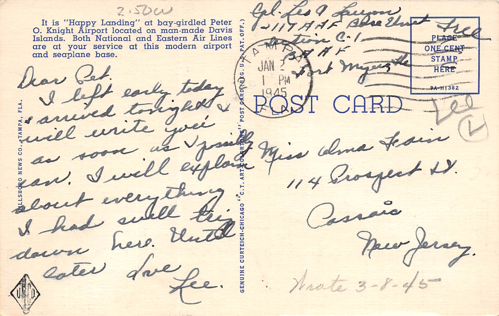 Tampa Florida Peter O. Knight Airport On Davis Islands, Vintage Postcard U17300