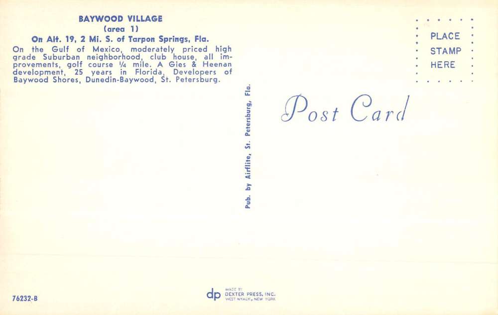 Tarpon Springs Florida Baywood Village Birdseye View Vintage Postcard K64382
